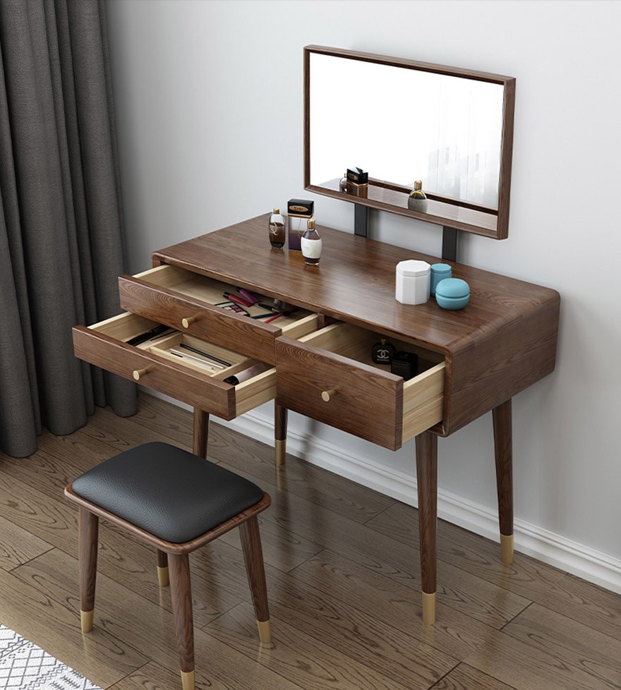 Bàn trang điểm bàn phấn gỗ sồi tự nhiên bền đẹp, làm điểm nhấn thẩm mỹ trong không gian nội thất phòng ngủ, góc làm đẹp không thể thiếu của phái nữ.